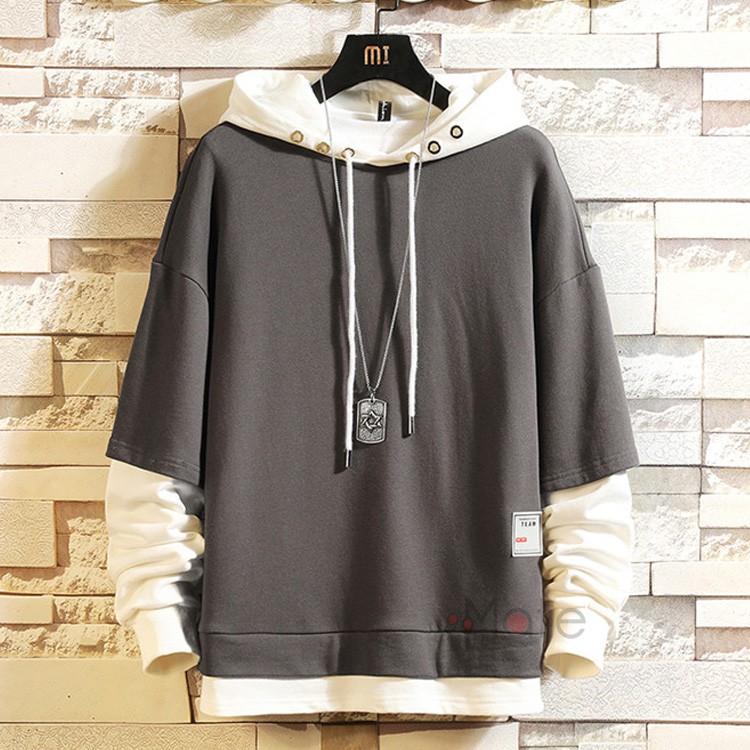メンズパーカー トレーナー パーカー 重ね着風 フェイクセット トップス プルオーバー 全2色 7サイズ スウエット 春服 おしゃれ メンズ フェイク風 トレーナー 大きサイズ 秋服 カジュアル 気質アップ